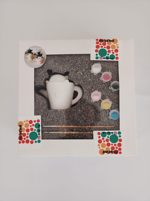 AtölyEmek 1 adet Fincan Kedisi Taş Saksı Boyama Seti