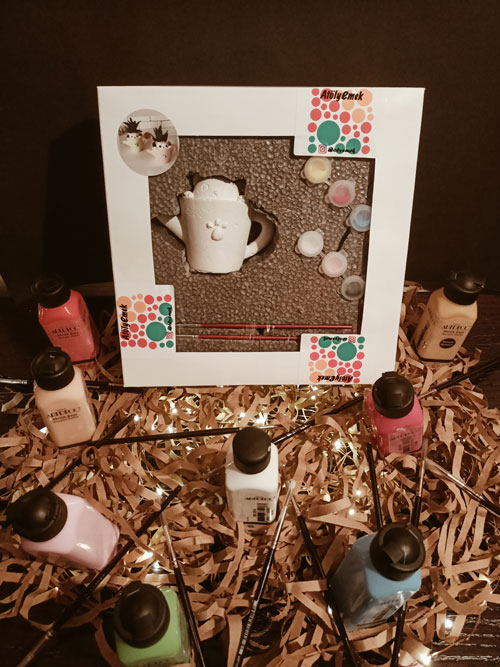 AtölyEmek 1 Adet Fincan Kedisi Taş Saksı Boyama Seti
