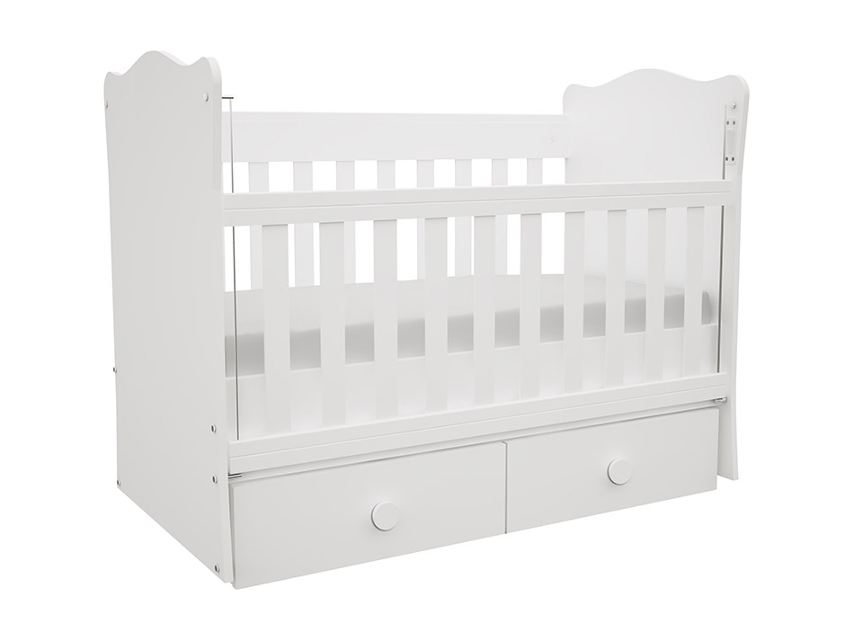 - Ergonomik ölçüleri ile her mekanda rahat bir kullanım alanı sağlayan bebek karyolası iki adet çekmecesi ile de annelere pratik çözümler sunuyor.
