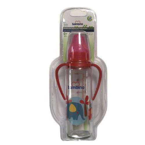 Bambino Silikon Kiraz Uçlu Kulplu Cam Biberon 225 Ml Kırmızı B016