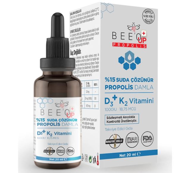 BeeO Up %15 Suda Çözünür Propolis + D3K2 Damla 20 ml