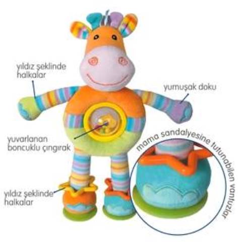 Mama sandalyesi oyuncağı ,Dik durmayı sağlayan vantuzlu ayaklar ,Yuvarlanan çıngırak ,Yumuşak ve güvenli BL1212