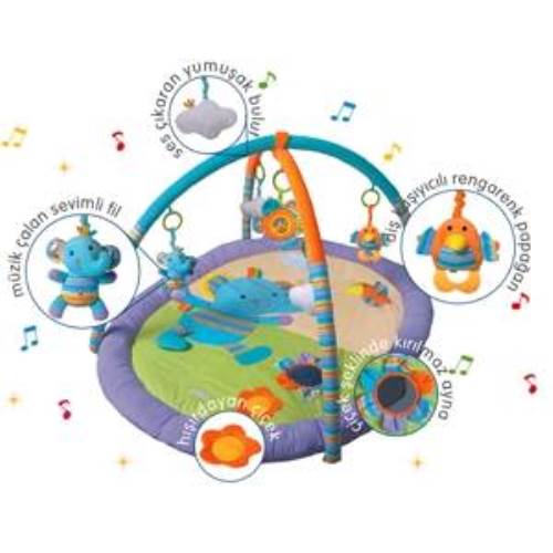 120x100x68cm, 2 adet oyuncak asma yayı ,Ses çıkaran bulut, hışırdayan çiçek, müzik çalan fil ,Güvenli kırılmaz ayna, diş kaşıyıcı ,Yumuşak ve güvenli BL1214