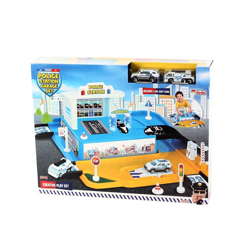- Kavisli yolları ve park yeri ile çocukların ilgisini çekecek ve oyunlarına renk katacak olan Dede Oyuncak Polis Otoprak Garaj Seti İstasyonlu Çocuklar Dede Oyuncak Polis Garaj Seti ile oyunlar oynamayı çok sevecekler