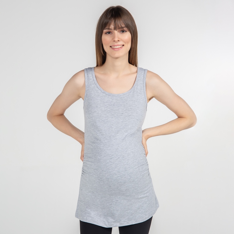 Funna Mamma 7637 Atlet Yaka Hamile T-Shirt - Alda - Gri / XL Beden