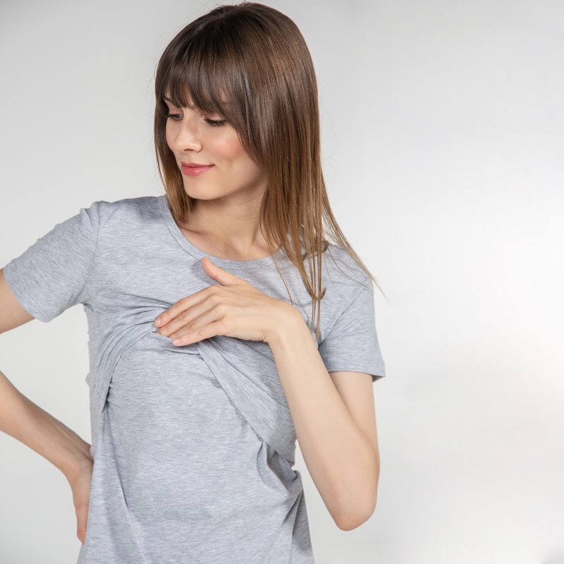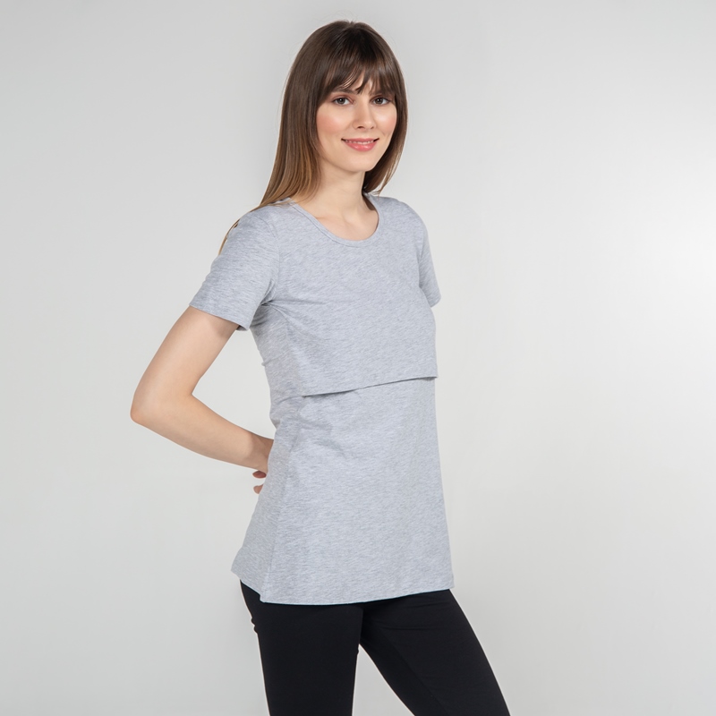 Funna Mamma 7659 Bisiklet Yaka Emzirme T-Shirt - Letizia - Gri / M