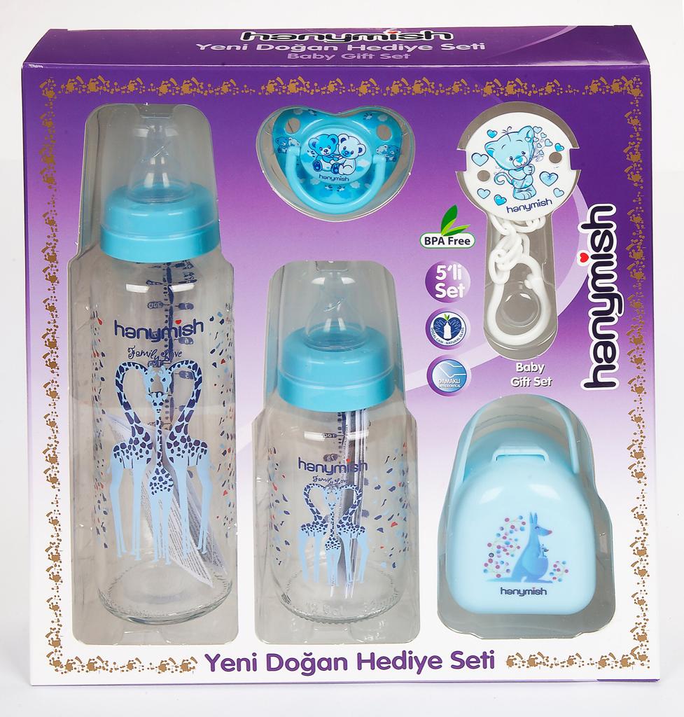 Hanymish Yenidoğan Cam Hediye Seti 5'li - Mavi - 651