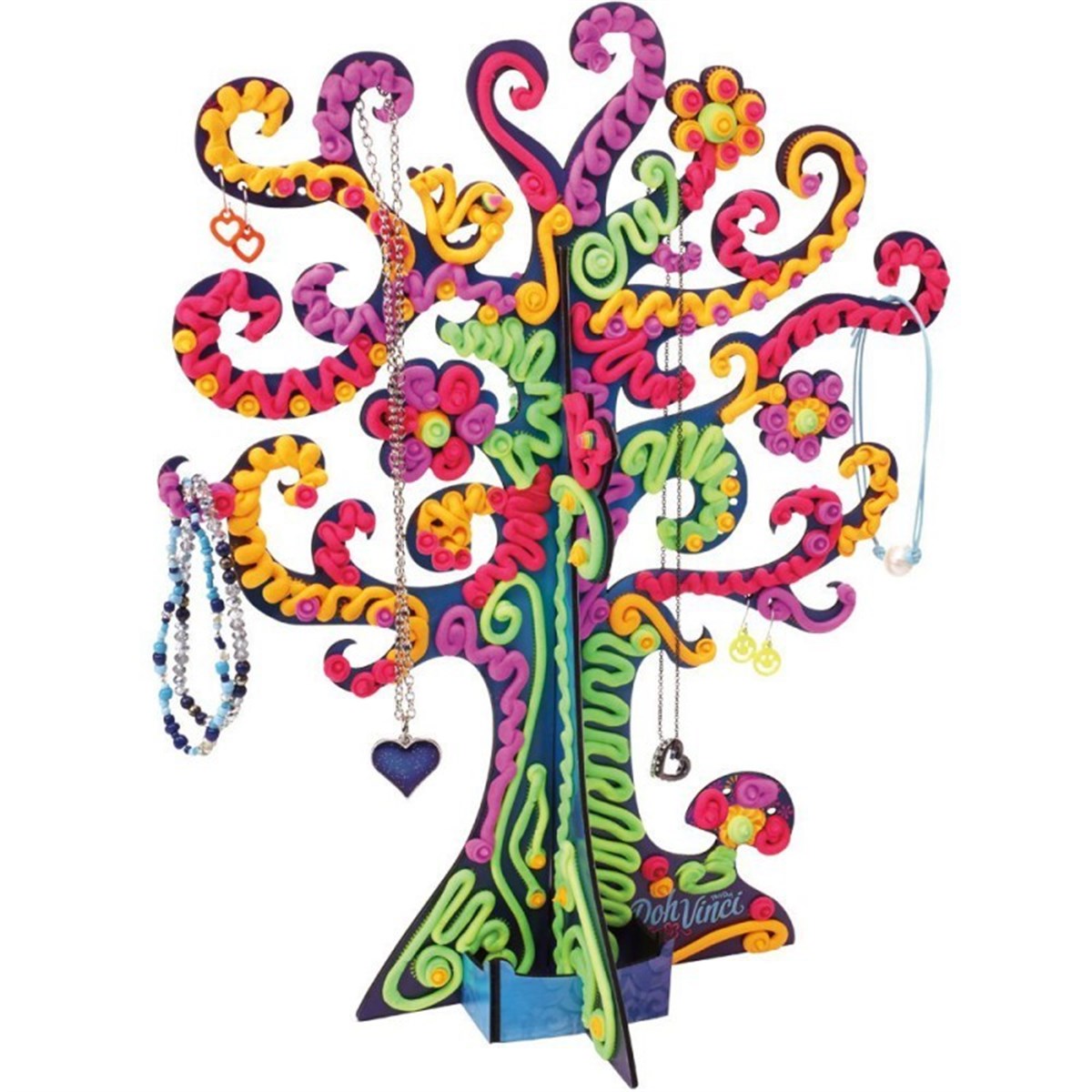 Kutuda üç parçalı takı ağacı, biri İki Renkli 4 Deco Pop, tasarım aleti ve Yaratıcılık Rehberi yer alıyor.