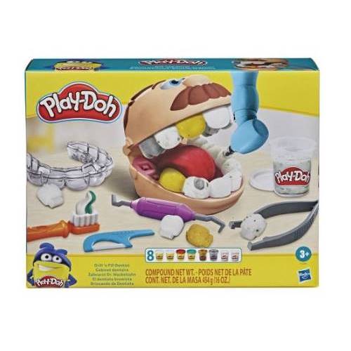 •  İçindekiler: hasta, dolgu aleti, tel silindiri, diş kalıbı, diş fırçası, şırınga aleti, ayna, sond, diş ipi, plastik cımbız ve 8 kutu Play-Doh Oyun Hamuru (toplam net ağırlık 454 gr).