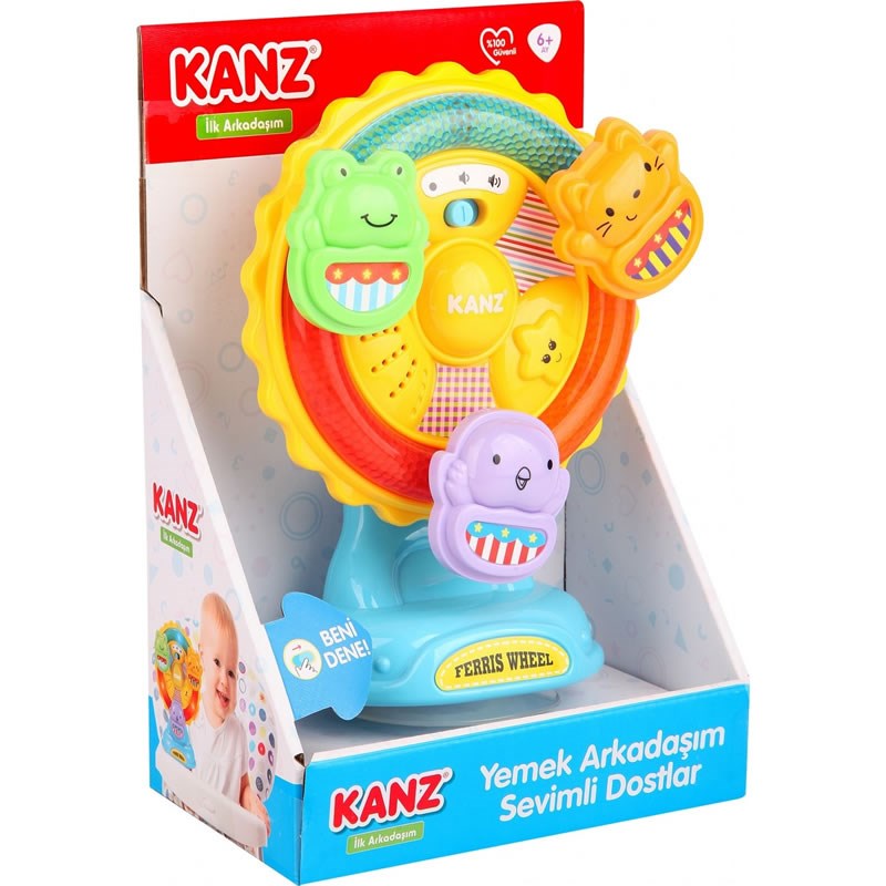 - : 6+ AyKanz Yemek Arkadaşım Sevimli DostlarMüzikli, ışıklı ve sesli Dönmedolap şeklinde eğlenceli bir oyuncak! Sevimli minikler Dönmedolabı çevirdikçe yanıp sönen ışıklar ve sesler ile oynamayı çok sevecekler! Özellikle yemek yerken bebeklerin ilgisini çekecek, böylece bebekler bu yeni arkadaşı sayesinde yemeklerini daha kolay ve eğlenceli yiyecekler.