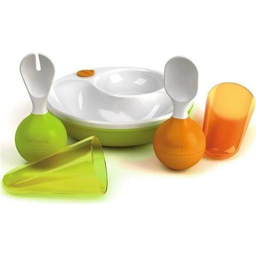 Aşama 1: 6. aydan itibaren kullanılabilecek ısıtıcılı mOmma yemek tabağı, bebeğinize farklı tatlar sunma imkanı sağlıyor. mOmma kaşığı yumuşak materyali ve ekstra hijyen sağlayan özel tasarımı ile beslenme saatlerini eğlenceli bir zaman dilimine dönüştürüyor.