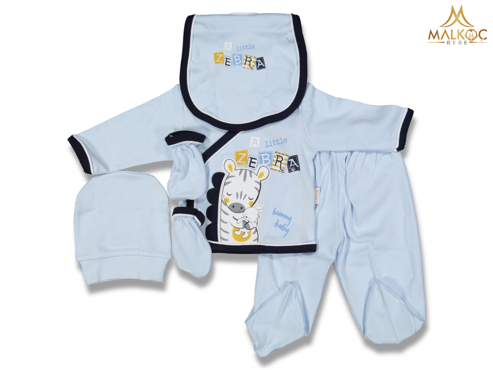 Leylek 4205-Erkek 5 Li Zebralı Zıbın Set 0-3 AY