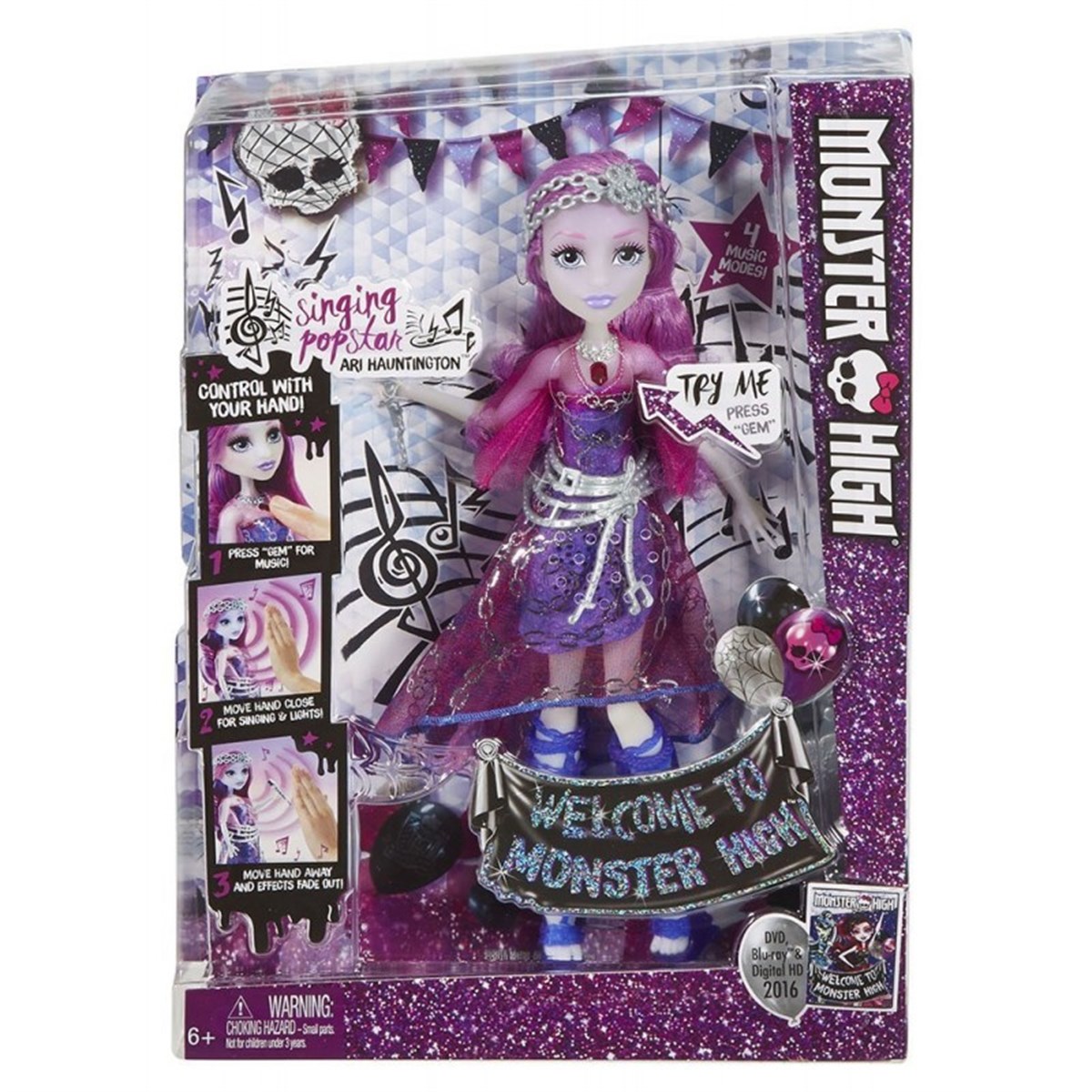 Yeni filminde "Monster High hoş geldiniz" Yeni yetenekleri keşfetmek! ışıklar, müzik ve şarkı bir şov oluşturmak mümkün Hayalet serin Ari Prividson. ışık, müzik, hafif müzik ve şarkı ya da fantastik performans Ari: Sarkıt 4 modları basarak aktif hale getirin. modlarda 2 ve 3 ışık ve kolye altında bir sensör vardır ve sizinle prova hazır bebek. yandan, yakın ses ses seviyesini ayarlar.
