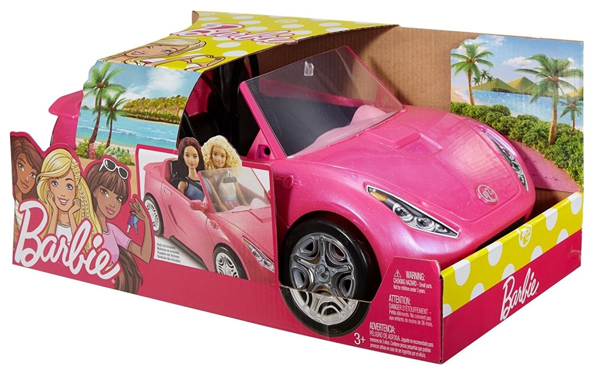Barbie üstü açık pembe arabasıyla yola çıkıyor. Havalı dış tasarımı ve üzerindeki Barbie logosu ile bu araba göz kamaştırıyor.