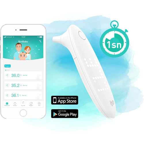 • Sıcaklık verileri Bluetooth vasıtasıyla BonBaby aplikasyonuna aktarılır, bebeğinizin sağlığını ve gelişimini takip etmenize olanak tanır.