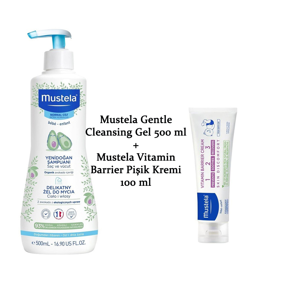 Mustela Gentle Cleansing Gel 500 ml + Mustela 1-2-3 Vitamin Barrier 100 ml Pişik Önleyici Krem