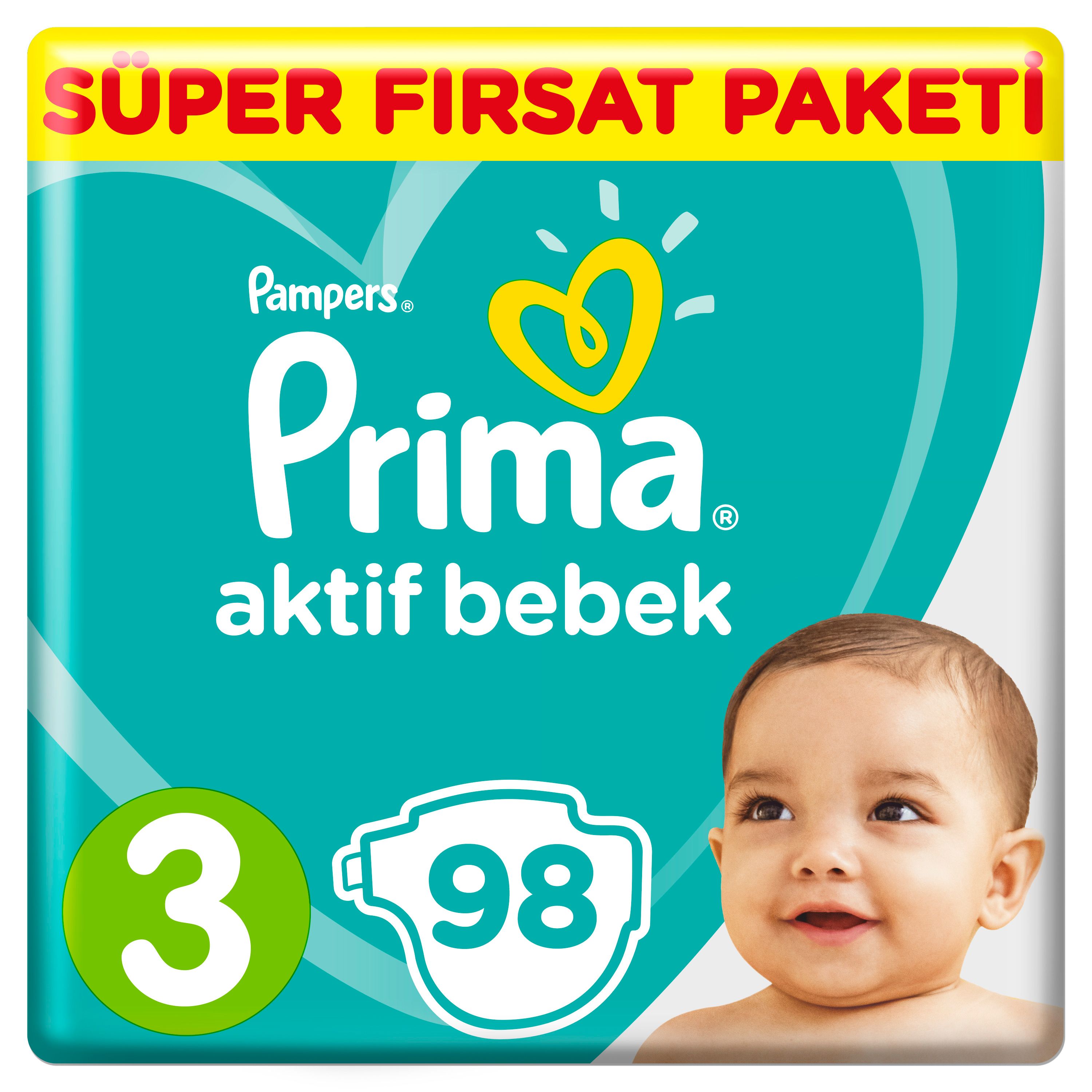 Prima Aktif Bebek Mega Fırsat Paketi 3 Beden 98 Adet