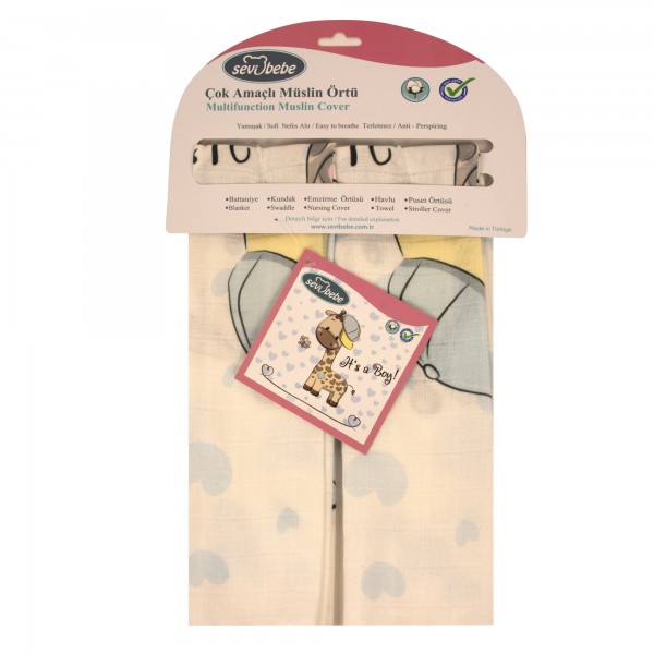 Sevi Bebe Pano Baskılı 2'li Çok Amaçlı Muslin Örtü (70x55cm) - Zürafa