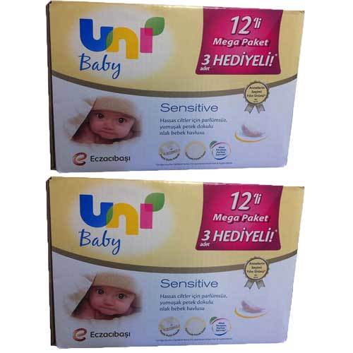 Uni Baby Sensitive Mega Paket 3 Adet Hediyeli 12'li Islak Mendil - 2 Adet