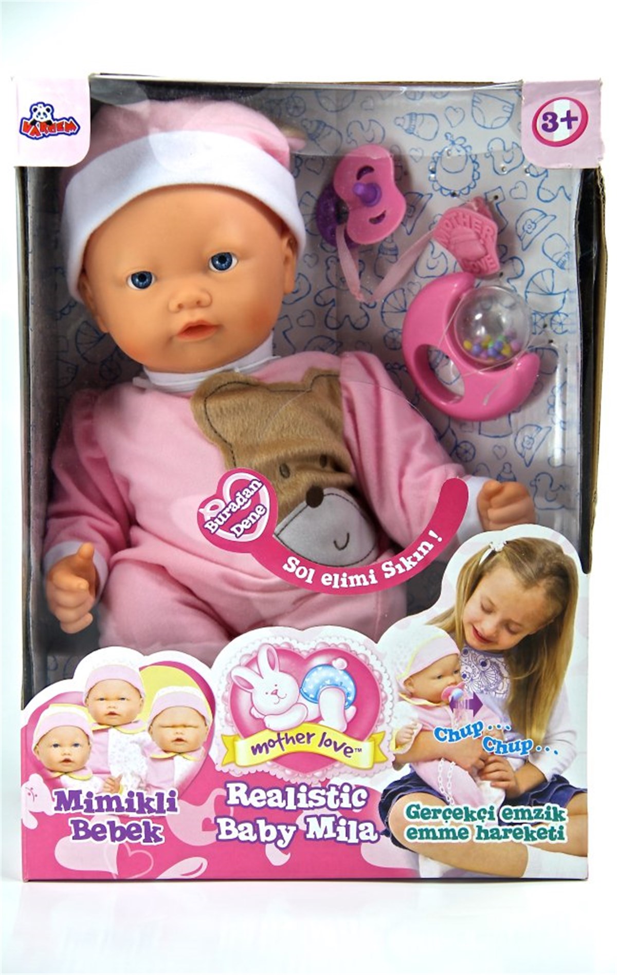Vardem Kutulu Pilli Sesli Çıngıraklı Mimikli Mila Bebek